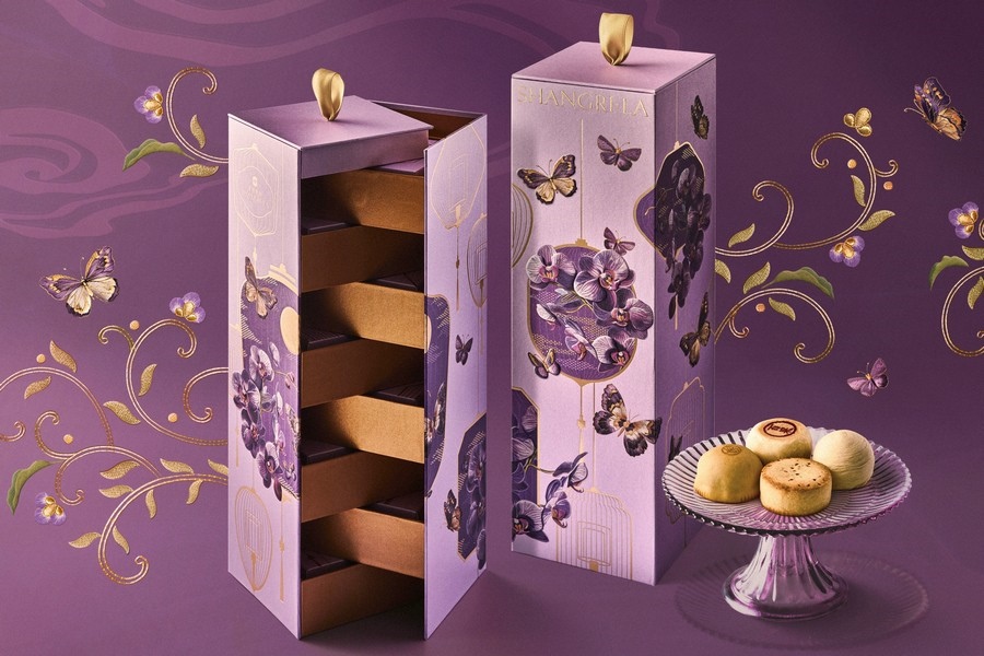 童心未泯家庭款月餅,創(chuàng)意可愛的小火車造型,一盒囊括哈密瓜鳳梨雙果、紅豆山楂、巧克力牛奶芯三種新穎口味,滿載溫馨與甜蜜緩緩駛來;賞心月目雪媚娘流心月餅,打破傳統(tǒng)的禮盒,采用了別致巧思的浪漫禮包,包內(nèi)裝有雪媚娘巧克力流心核桃栗子、烏龍白桃水蜜桃流心、陳皮土鳳梨金桔流心和抹茶紅豆草莓流心月餅,細(xì)膩爽口,唇齒滿足, 給味蕾帶來別樣享受;八方鴻運(yùn)月餅,八珍玉食,八面玲瓏,禮盒中包含廣式單黃白蓮蓉、蘇式百果椒鹽、瓊式純鳳梨酥、京式自來紅、潮式松露鮑魚、晉式蛋月燒棗泥松仁、滇式玫瑰云腿、川香牛肉藤椒軟心,可甜可咸,款款新意,薈萃八方鴻運(yùn),饋贈四方親朋;香格里拉手提箱月餅,設(shè)計(jì)精巧的手提箱,薈萃亞洲滋味,馬來西亞白咖啡、椰汁西米、宇治抹茶、榴蓮、芒果柚子、香蘭葉月餅,一盒六味,配上軟糯綿化的桃山皮,一口甘香,馥郁悠長。一系列月餅禮盒,結(jié)合濃郁當(dāng)?shù)靥厣摹把蛉舛Y盒”、“燒麥禮盒”、“烤羊腿禮盒”,還有香格里拉定制青島啤酒、醬香白酒、甄選紅酒等為節(jié)日助興。