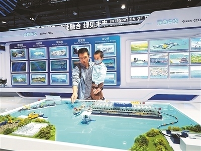 第十六屆國(guó)際交通技術(shù)與設(shè)備展覽會(huì)上,觀眾在中國(guó)交建展位參觀“太湖生態(tài)清淤工程”模型。杜建坡攝(人民圖片)