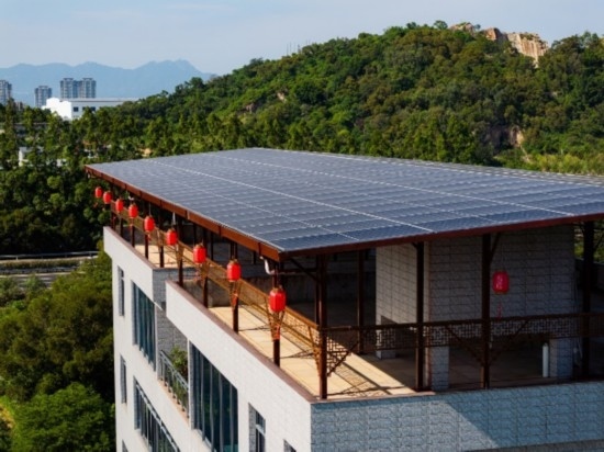 “陽明樓”是興中村通過租賃形式引入的屋頂光伏產(chǎn)品,農(nóng)戶通過出租閑置屋頂給光伏電站項目獲得租金收益,目前該村已有十余戶安裝。為最大化發(fā)電效率,產(chǎn)品采用5°人字坡設(shè)計,確保光伏板全年可接收足夠光照,實現(xiàn)收益最大化。按屋頂安裝105塊光伏組件計算,農(nóng)戶在合作期間累計可獲得屋頂綜合收益近8萬元。產(chǎn)品不僅隔熱防雨,其設(shè)計結(jié)合中式建筑風(fēng)格,也成為“綠化”鄉(xiāng)村的一道風(fēng)景。