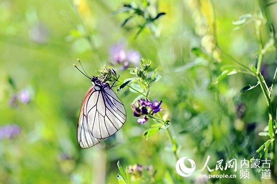 敕勒川草原中,彩蝶在花間飛舞。王慧 攝