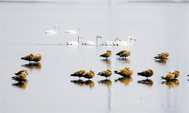 天鵝“組團(tuán)”落腳