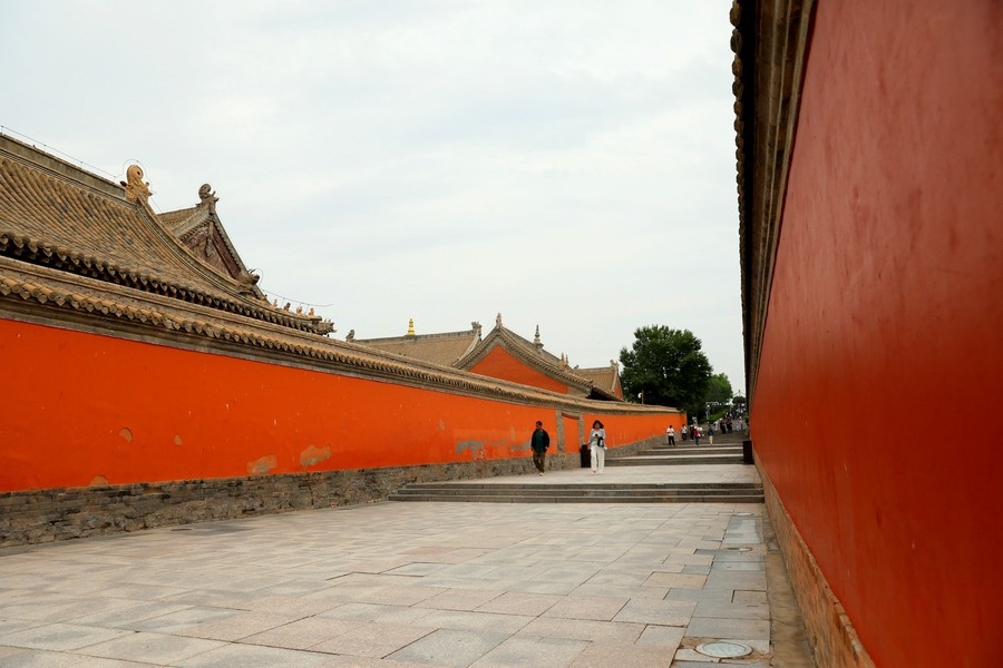 游客從貝子廟旁的臺階走過