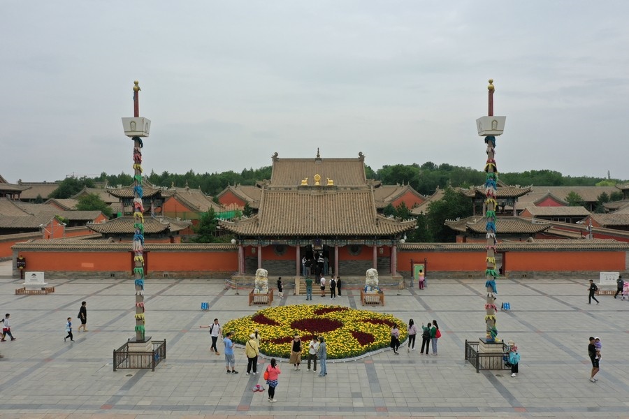 游客在貝子廟前拍照打卡