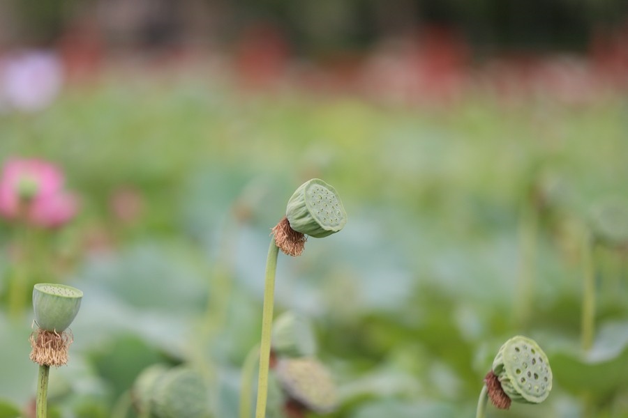 8月10日,內(nèi)蒙古烏海人民公園內(nèi)的荷花已進入采蓮時節(jié)。