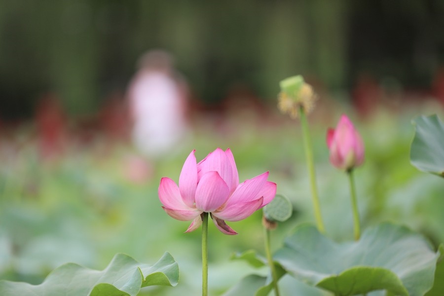 初秋時節(jié),水光瀲滟間,公園內(nèi)的滿池荷花嬌艷、荷葉青翠,漫步棧道中,仿佛置身于一幅詩意的畫卷。