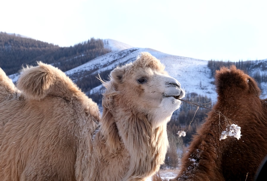 動(dòng)物們成群結(jié)隊(duì)在雪地覓食