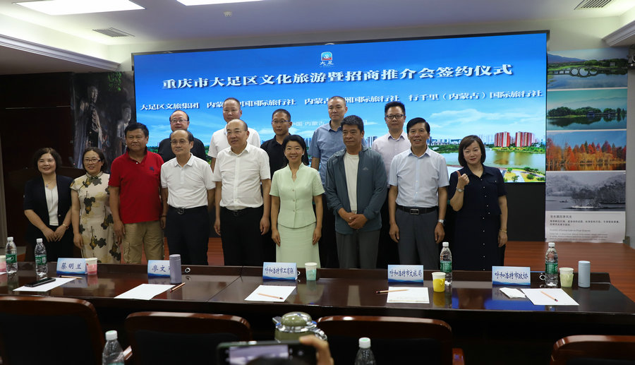 推介會上,內(nèi)蒙古中國國際旅行社、內(nèi)蒙古五洲國際旅行社、行千里(內(nèi)蒙古)國際旅行社與大足區(qū)文旅集團簽署合作協(xié)議,兩地以互利共贏為目標,共同開拓內(nèi)蒙古和重慶旅游市場,以此充分滿足兩地人民對美好生活的向往,讓內(nèi)蒙人去重慶、重慶人來內(nèi)蒙古旅游變得更加順暢。
