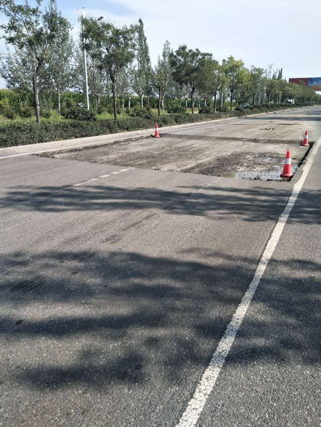 8月10日上午,記者與郝先生一同前往事發(fā)地。在現(xiàn)場,記者發(fā)現(xiàn)郝先生所說的大坑已經(jīng)被瀝青鋪平,沿著車行駛的方向還立了錐桶作為警示標(biāo)志,在離這處剛鋪平的路面約30米處的綠化帶中央,養(yǎng)護(hù)工人正在把郝先生撞倒的那棵樹拖走。記者發(fā)現(xiàn)一輛黑色的大眾牌轎車停在路邊,交警正在對車輛的破損情況進(jìn)行查驗。這輛黑色大眾車氣囊已經(jīng)彈出,防凍液及機(jī)油漏了一地。據(jù)車主廉女士介紹,當(dāng)天早上5時左右,她駕車行駛至這里時(郝先生出事的地方)開進(jìn)了那個大坑,由于沒有任何警示標(biāo)志,到了坑邊再減速已經(jīng)來不及。她的車快速開過大坑后,氣囊彈出,汽車多部件受損,所幸人沒事。經(jīng)廉女士證實,出事的那個坑是當(dāng)天上午10時左右,維修人員才鋪平的。正說話間,一位自稱是209國道養(yǎng)護(hù)人員開著拖車來拖廉女士受損的轎車。記者追上去問這個路段的養(yǎng)護(hù)歸哪個單位負(fù)責(zé),并說明郝先生的車就因為這個大坑撞到了隔離帶,差點出現(xiàn)大事故。這名養(yǎng)護(hù)工作人員馬上說,正找這個撞樹的人呢,這樹他(郝先生)得賠。記者隨后亮名身份,并再次詢問這個路段養(yǎng)護(hù)歸哪個公司負(fù)責(zé),這名養(yǎng)護(hù)人員說他只是負(fù)責(zé)養(yǎng)護(hù)的,有事找恒達(dá)公司去。