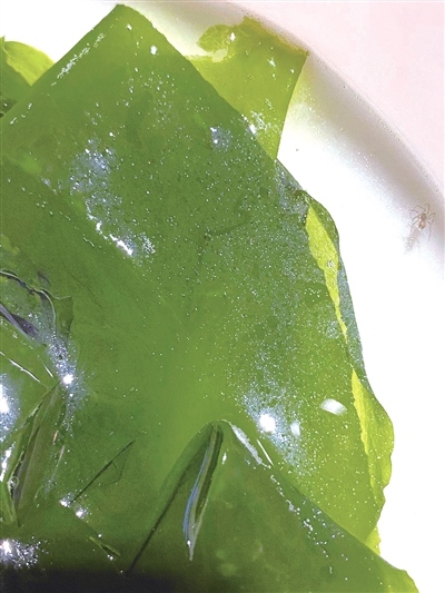 據(jù)劉女士回憶,8月9日晚,她和女兒到鄂爾多斯市伊金霍洛旗額爾敦傳統(tǒng)涮(伊旗店)吃飯,母女二人正吃得暢快之際,突然發(fā)現(xiàn)在一盤海帶里有一只蜘蛛(如圖),在盤子里爬來(lái)爬去,看見(jiàn)這一幕,母女二人胃口全無(wú)。隨即,劉女士和服務(wù)人員進(jìn)行了溝通。
