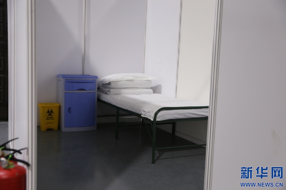 方艙庇護(hù)醫(yī)院隔間內(nèi)配備行軍床、床頭柜、垃圾桶等,可滿足隔離患者基本居住需求。(新華網(wǎng) 李倩)