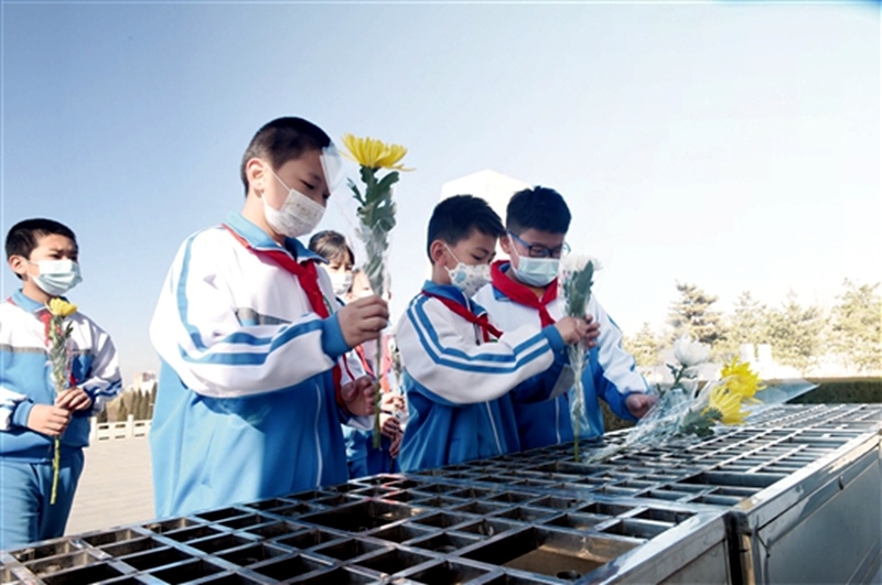 4月3日,在清明節(jié)到來之際,包頭市青山區(qū)一機三小的少先隊員自發(fā)來到井坪公園烈士紀念廣場,向革命烈士敬獻鮮花,聆聽革命先烈的光輝事跡,弘揚革命精神,傳承紅色基因,汲取前行力量,爭做新時代好少年。(記者 張富博)