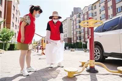 社區(qū)工作人員維護轄區(qū)衛(wèi)生