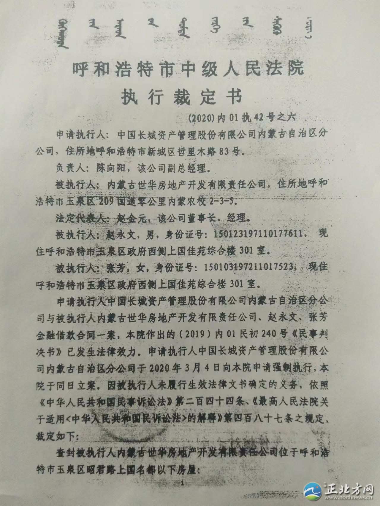 “我們小區(qū)2019年交房,2021年11月份,小區(qū)終于能辦房本了??墒窃谵k理房本的過(guò)程中,我們得知小區(qū)住宅樓100多套房子被多個(gè)法院查封了,小區(qū)辦房本的事也就停了下來(lái)。現(xiàn)在,我們找開(kāi)發(fā)商內(nèi)蒙古世華房地產(chǎn)開(kāi)發(fā)有限責(zé)任公司(以下簡(jiǎn)稱世華房地產(chǎn)公司)問(wèn)詢?yōu)槭裁捶课荼徊榉猓螘r(shí)能夠解封,可是開(kāi)發(fā)商躲著不見(jiàn)我們!這事究竟歸誰(shuí)管呢?”近日,呼和浩特市玉泉區(qū)上國(guó)名都業(yè)主向北方新報(bào)正北方網(wǎng)記者反映。