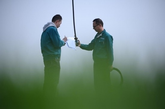 “這個噴頭換過了,你登記好。”在河南省駐馬店市西平縣高標準農(nóng)田示范區(qū)的麥田里,河南水投柏農(nóng)產(chǎn)業(yè)發(fā)展有限公司運營管理部負責人劉亞輝一邊擰好噴灌機的新噴頭,一邊叮囑一起巡檢的王英凡。