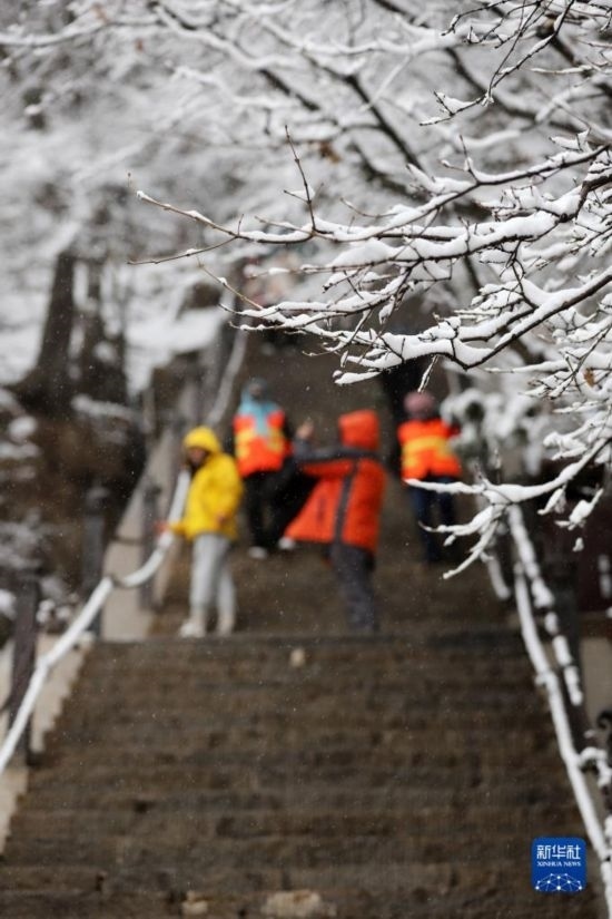 受冷空氣影響,位于甘肅省平?jīng)鍪械尼轻忌骄皡^(qū)迎來(lái)降雪,景色如畫(huà)。