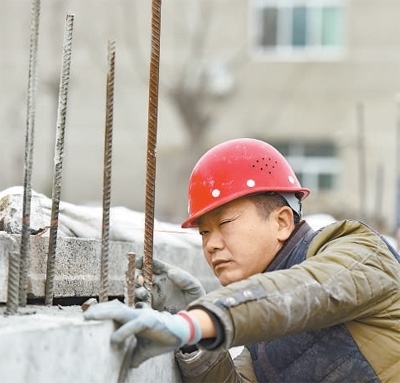 劉玉華在吊線找直。王光華攝(人民視覺(jué))