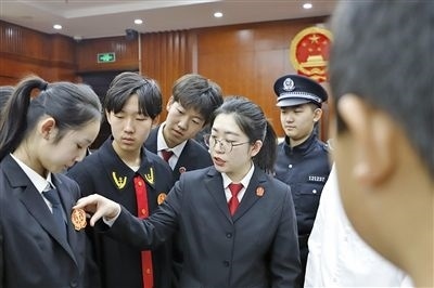 南開(kāi)區(qū)法院邀請(qǐng)學(xué)生體驗(yàn)“模擬法庭”。
