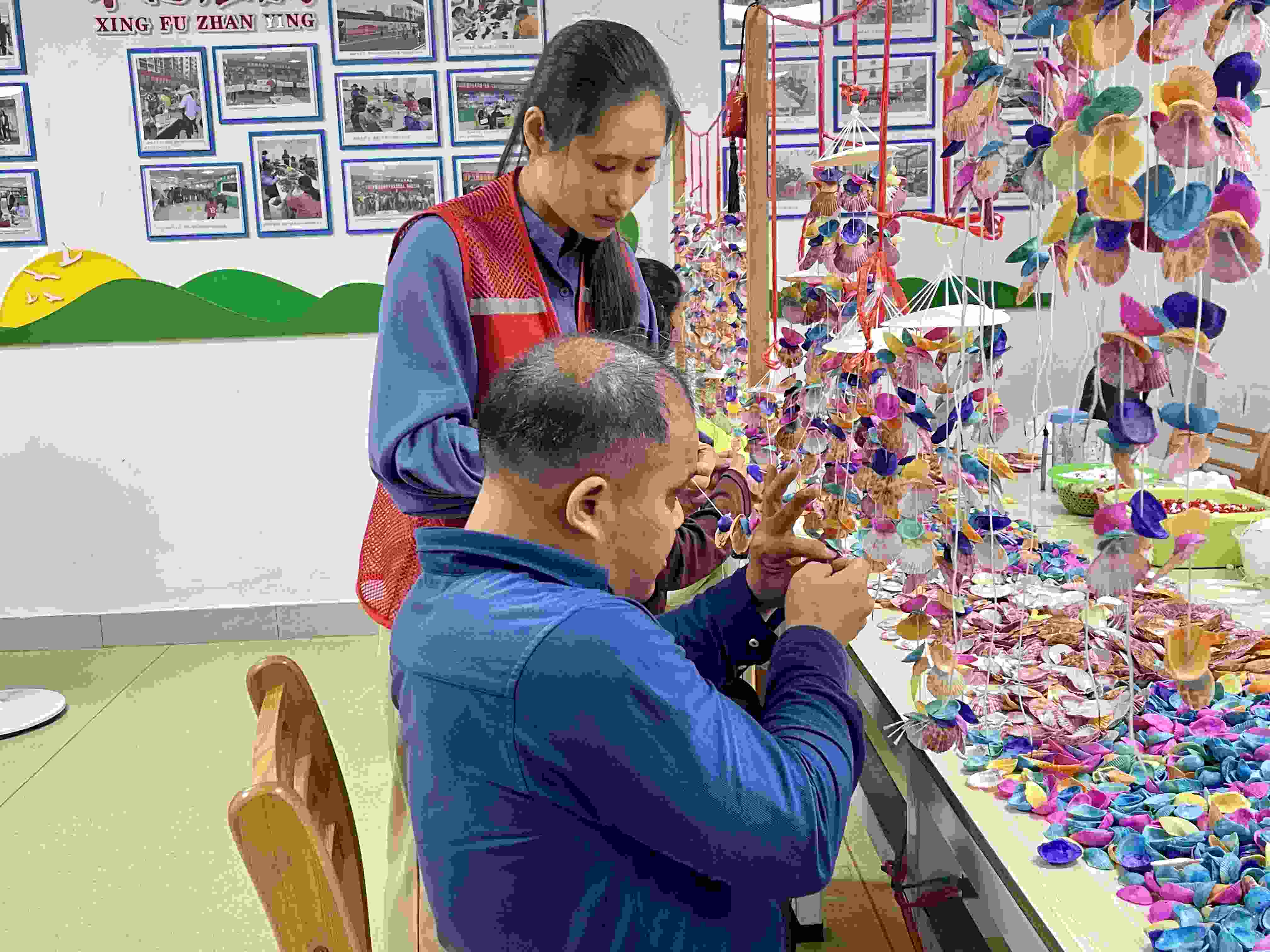據了解,中心開設“愛心車間”,聯系企業(yè)為符合條件的殘疾人提供輔助性就業(yè)崗位,把部分操作簡單、可以離廠加工的產品集中于此,讓殘疾人就近加入生產,按照北海市最低工資標準發(fā)放工資及購買五險。同時,在完成企業(yè)安排的工作后,中心還為殘疾人聯系串珠鏈、串貝殼、插塑料花等手工活,提升殘疾人的技能,幫助他們增加收入。