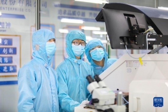 5月4日,青年技術員在重慶平偉實業(yè)股份有限公司無塵生產(chǎn)車間調(diào)試芯片生產(chǎn)設備。