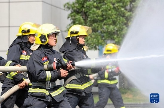 5月4日,貴州省銅仁市玉屏侗族自治縣消防救援大隊青年消防員在進行訓練。