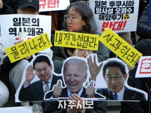 ·岸田訪韓前夕,韓民眾舉行“反日燭光抗議集會(huì)”。