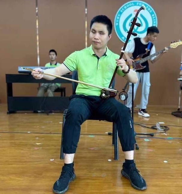2021年,先天性失明的毛歡笑來(lái)到蕪湖市盲人學(xué)校后,沒(méi)有錯(cuò)過(guò)黑眼睛樂(lè)隊(duì)在校園里的任何一次演出。