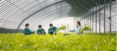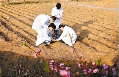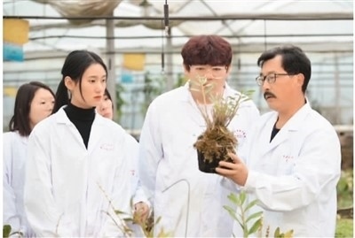 萊蕪職業(yè)技術(shù)學(xué)院師生在萊蕪區(qū)苗山鎮(zhèn)田家樓村的白花丹參種植基地查看種苗情況。趙樹(shù)宴攝