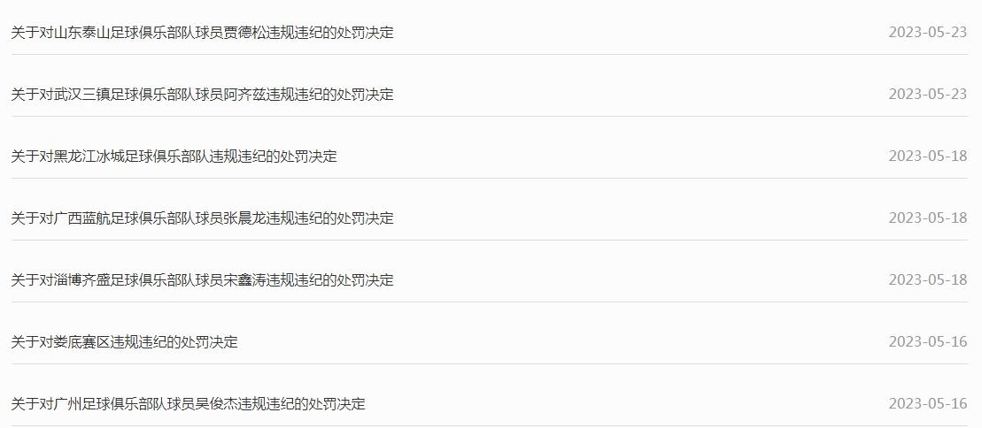 處罰公告。圖片來源:中國(guó)足協(xié)網(wǎng)站