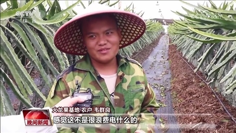 火龍果基地 農(nóng)戶 韋群良:為什么要開燈,感覺這不是很浪費(fèi)電什么的,就這樣覺得,后面才知道開原來是開燈催花,要花來得更快,一年開燈的話也多個一兩批花。