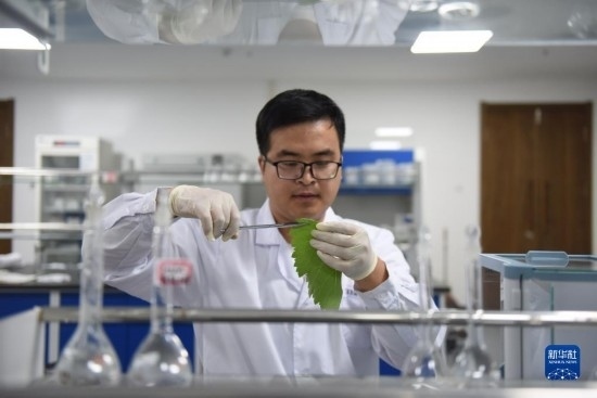 6月21日,在位于河北省懷來(lái)縣的河北省葡萄產(chǎn)業(yè)技術(shù)研究院,來(lái)自天津農(nóng)學(xué)院的研究生韓亞奇正在分析葡萄葉的健康狀況。