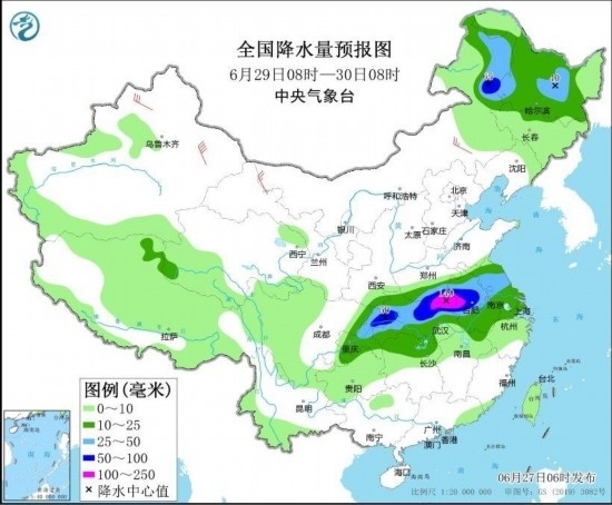 圖4 全國降水量預(yù)報(bào)圖(6月29日08時-30日08時) 圖自中央氣象臺網(wǎng)站
