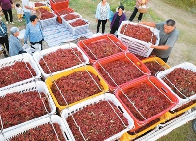河南省洛陽市宜陽縣柳泉鎮(zhèn)沙漠村,村民在收獲花椒。 田義偉攝(人民視覺)