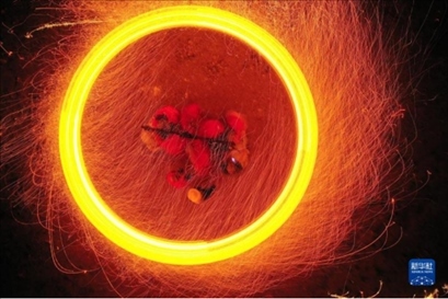 7月5日,河北省灤平縣火斗山鎮(zhèn)大店子村的民間藝人在表演“掄花”。