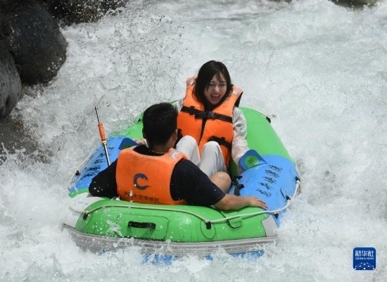 近日,浙江省杭州市持續(xù)晴熱高溫天氣,不少市民來到美麗鄉(xiāng)村體驗(yàn)高山游、親水游。