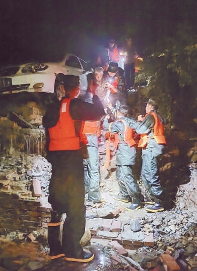 因暴雨引發(fā)山體滑坡,北京市門頭溝區(qū)妙峰山鎮(zhèn)水峪嘴村大量房屋被沖垮。武警北京總隊(duì)機(jī)動某支隊(duì)分散摸排村莊、搜救傷員。經(jīng)過22個小時(shí)持續(xù)奮戰(zhàn),轉(zhuǎn)移受災(zāi)村民107人,轉(zhuǎn)運(yùn)村民物資財(cái)產(chǎn)1100余件。