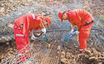8月3日,北京門頭溝區(qū),救援隊(duì)員在234國道K315至K342段道路上清理障礙。本報(bào)記者 張武軍攝