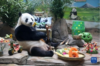 8月11日是大熊貓“剛剛”(小名“青城”)的6歲生日,鞍山動(dòng)物園為它準(zhǔn)備了特制的生日大餐,眾多市民游客前來(lái)為它慶生。