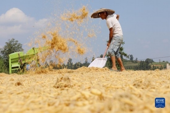 立秋以來,貴州、湖南等地農民搶抓晴好天氣,晾曬收獲的作物。