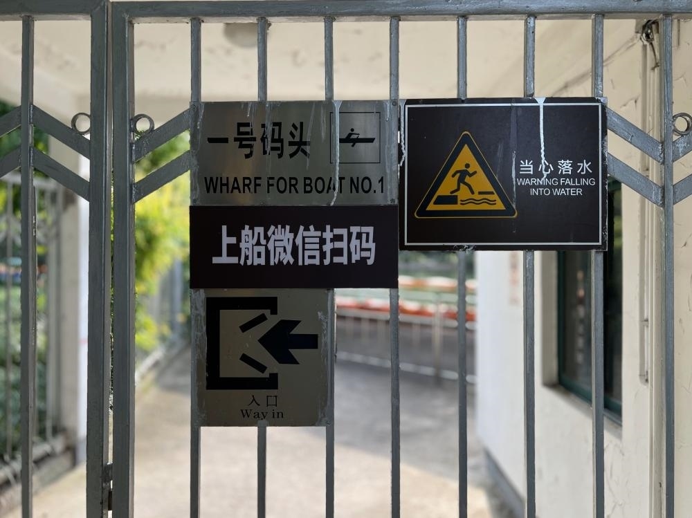 當(dāng)日下雨,乘坐游船的游客并不多,在工作人員的指導(dǎo)下都順利完成了購(gòu)票??墒?,在人流量較大的晴天,不會(huì)使用電子支付的老人是否能得到及時(shí)的輔助?現(xiàn)金售票亭長(zhǎng)時(shí)間無(wú)人在崗的情況下,市民又是否能使用現(xiàn)金購(gòu)票呢?目前,碼頭工作人員給出了“我沒(méi)辦法收現(xiàn)金,要等售票員回到售票亭”的答復(fù)。