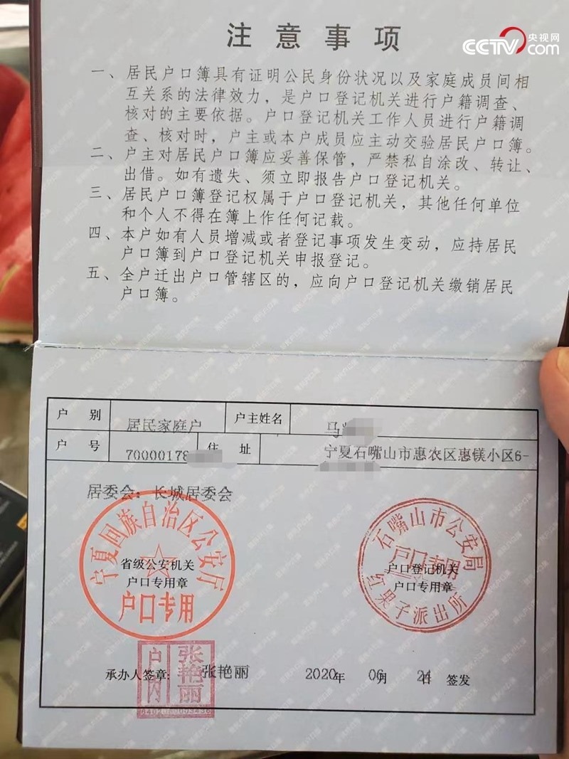 馬明家的新戶口本(中國(guó)之聲記者任夢(mèng)巖 攝)