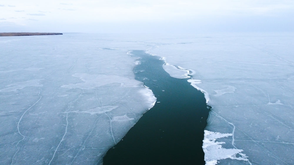 這是4月17日拍攝的呼倫湖開湖景象(無人機照片)。新華社記者 王楷焱 攝