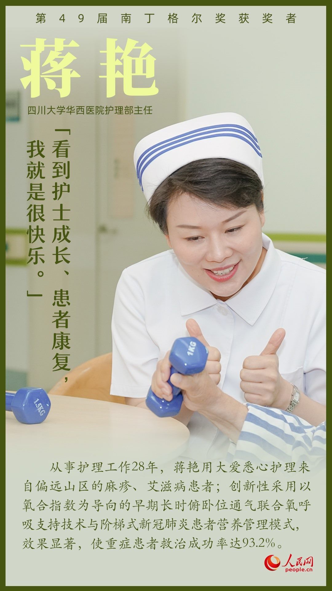 第49屆南丁格爾獎頒獎大會9月5日上午在北京人民大會堂舉行,7名我國護理工作者獲得南丁格爾獎章。她們辛勤工作在臨床第一線,全心全意為患者服務,生動詮釋了“人道、博愛、奉獻”的紅十字精神;她們用擔當奏響生命之歌,用奉獻書寫白衣使命,在推進健康中國建設的征程上步履不停。