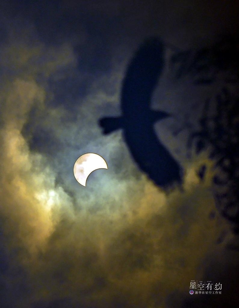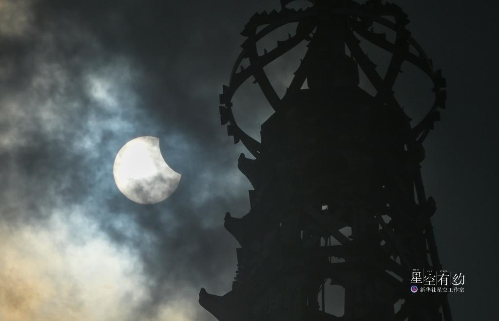 2023年4月20日出現(xiàn)在印度尼西亞雅加達(dá)上空的日食景觀。新華社發(fā)(祖卡南攝)