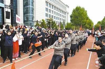 拔河是最后一個(gè)項(xiàng)目。賽場(chǎng)兩側(cè)人頭攢動(dòng)、摩肩接踵,大家無(wú)不關(guān)注著這場(chǎng)團(tuán)結(jié)與力量的比試。掌聲、加油聲、歡呼聲響徹云霄,在一場(chǎng)場(chǎng)激烈對(duì)抗中,全場(chǎng)氣氛一次次達(dá)到高潮。