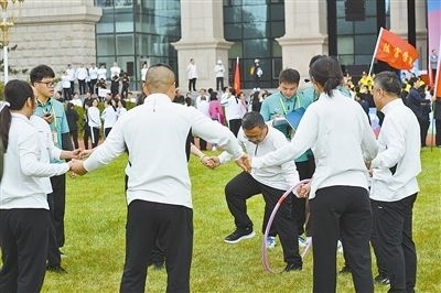 一邊是如火如荼的競(jìng)速賽事,一邊是輕松愉快的友誼賽與趣味賽。小游戲有大學(xué)問(wèn),乒乓球托球跑接力賽講究的是穩(wěn)中求進(jìn),呼啦圈傳遞賽則考驗(yàn)著合作無(wú)間的智慧。