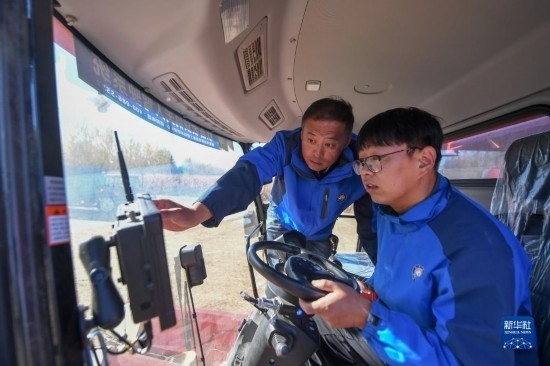 10月19日,在中國科學(xué)院“黑土糧倉”科技會戰(zhàn)長春示范區(qū)公主嶺示范基地,中國科學(xué)院東北地理與農(nóng)業(yè)生態(tài)研究所高級工程師陳國雙(左)與團(tuán)隊成員調(diào)試無人駕駛農(nóng)機(jī)。