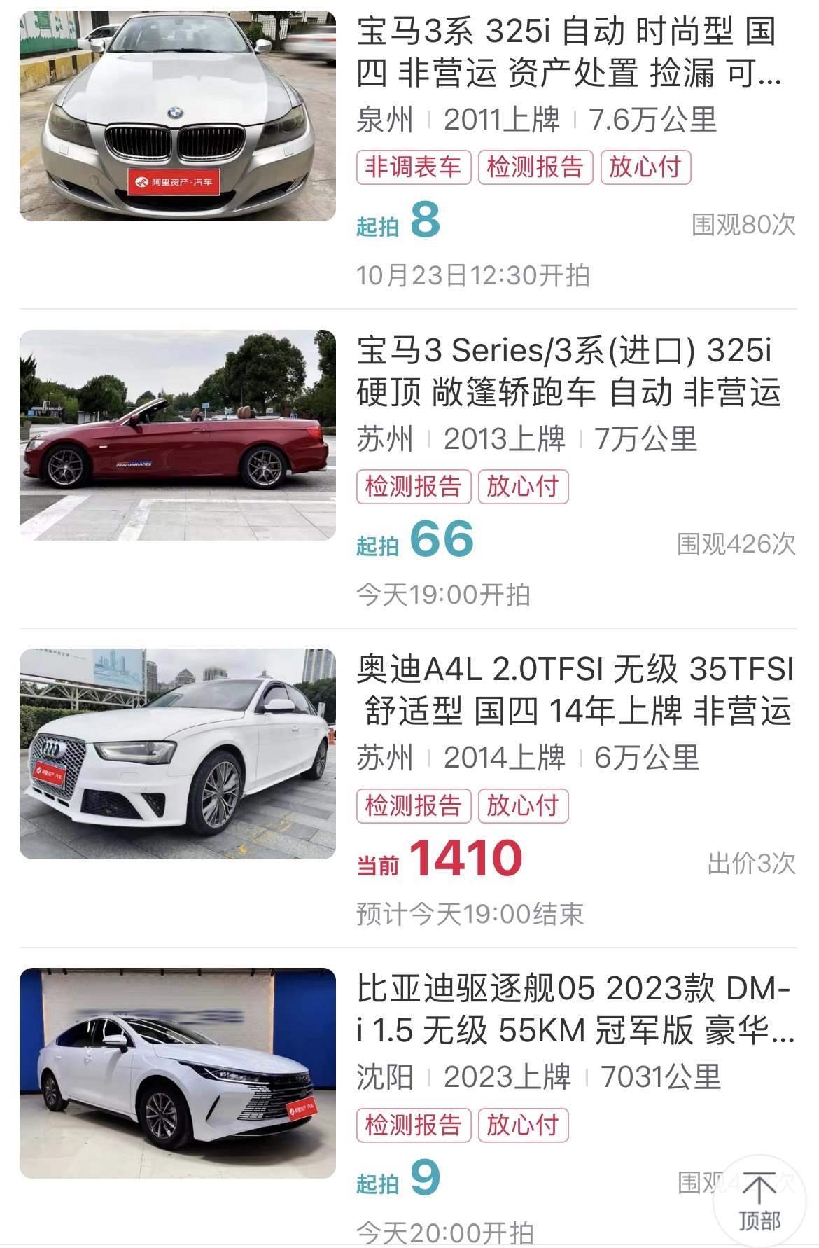 ▲拍賣平臺(tái)上多個(gè)拍賣公司掛出1元起拍賣豪車的信息 網(wǎng)絡(luò)截圖