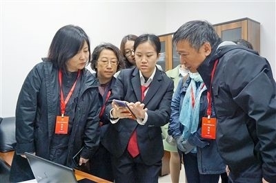 最高人民法院第五巡回法庭干警為代表演示群眾來信一鍵回復。