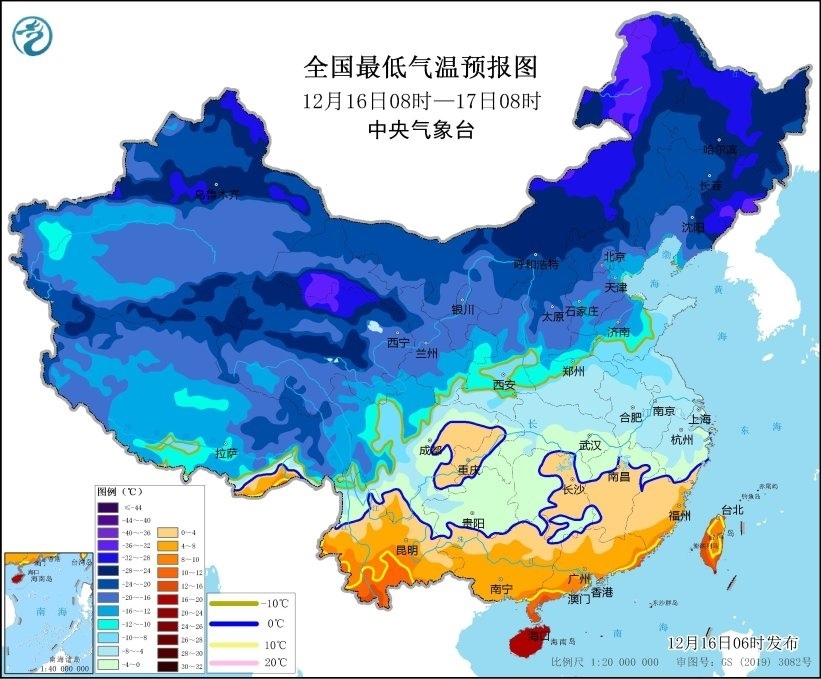 中央氣象臺12月16日06時發(fā)布寒潮藍(lán)色預(yù)警