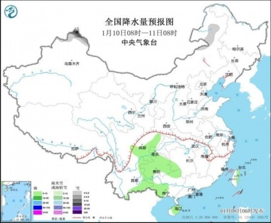 全國降水量預報圖(1月10日08時-11日08時) 來源:中央氣象臺網(wǎng)站
